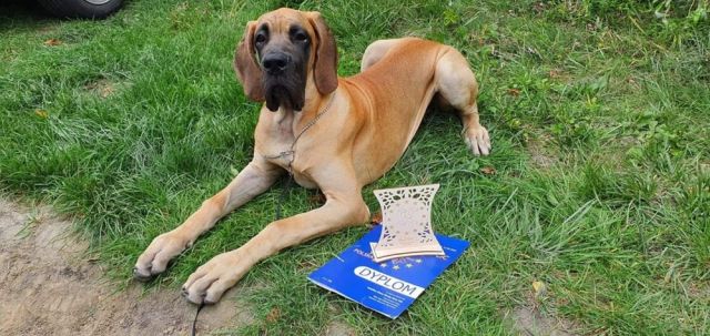 | Дата проведения | Название | Город / Страна | Класс | Число собак в классе | Число собак на выставке (того же пола/всего) | | Статус | Результат | | Эксперт | | 11.09.2022 | EuDDC 2022, Wawrzkowizna, Польша, палевые/тигровые | Польша | Бэби | 4 | 32 / 69 | | Международная | 003, б.персп.