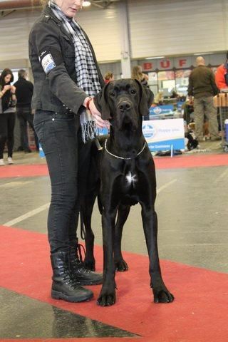 | Дата проведения | Название | Город / Страна | Класс | Число собак в классе | Число собак на выставке (того же пола/всего) | | Статус | Результат | | Эксперт | | 17.05.2013 | World Dog Show-2013, черные/мраморные кобели