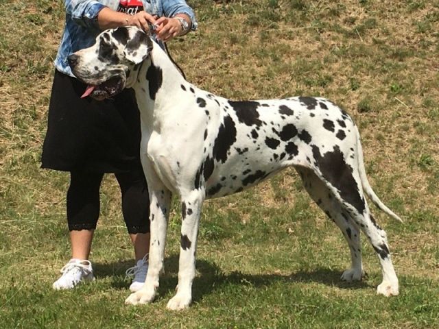 | Date of show | Show name | City / Country | Class | Number of dogs in class | Number of dogs on the show (same sex/all) | | Status | Result | | Judge | | 17.06.2023 | 54 Club Show Great Dane, Czech, Olšovec-Jedovnice (harlequin) | Czehia | Open | 6 | 27 / 45 | | Speciality (CW) | 002, ex.