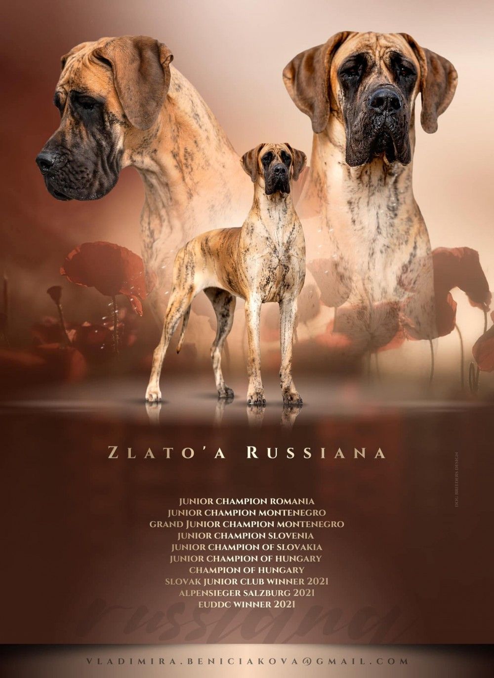 Res. Jr World Winner, Russian Club Winner, Grand CH Russia, CH Russia, Jr CH Russia, ... ♀ GOLD RENESSAN'S RENDEZVOUS ROMANTIC Brindle |