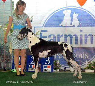 | IMMORTELI GAYANA, RKF 3359106 DOBRYNIA NIKITICH DES MONTS DE L'AUTAN x IMMORTELI EKSI CH Russia, Jr CH Russia | (†) 01.07.2012 Female Harlequin |