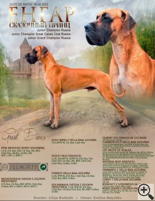 Int.CH (FCI), Russian Club Winner, Grand CH Russia, CH Belarus, CH Russia, ... ♂ ГОР ДЖАЗ С ЗЕЛЁНЫХ ПРОСТОРОВ Палевый |