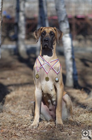 | Date of show | Show name | City / Country | Class | Number of dogs in class | Number of dogs on the show (same sex/all) | | Status | Result | | Judge | | 30.06.2024 | САС, Russia, Artem | Russia | Open | 1 | 3 / 6 | | Special rating status/speciality | 001, ex. BOS CAC, Club Winner Cand. | | Strelkova Galina | | 29.06.2024 | САС, 'Summer Cup 2024', Russia, Artem | Russia | Open | 1 | 2 / 4 | | Special rating status/speciality | 001, ex. BOS CAC, Club Winner Cand. | | Vyguzov Igor | | 01.07.2023 | САС, 'OO PKLKF', Russia, Vladivostok | Russia | Junior | 1 | 1 / 1 | | Special rating status | 001, ex. Best Junior, BOB JCAC | | Pilikin Victor | | 26.02.2023 | 'Discovery Dog Show', Russia, Vladivostok | Russia | Junior | 1 | 1 / 1 | | Special rating status | 001, ex. Best Junior, BOB JCAC | | Ovsyannikova Yuliya | | 27.08.2022 | CAC, dog show 2 groups, Russia, Vladivostok | Russia | Baby | 1 | 1 / 3 | | Regional | 001, v.p. Best Baby BISB-3 | | Tikhomirova Marina | | 27.08.2022 | CAC-ChRKF, all-breed, 'Summer Show-2022', Russia, Vladivostok | Russia | Baby | 2 | 2 / 4 | | Regional | 001, v.p. Best Baby | | Revina Tatiana ivanovna | Last update was 13.08.2024
