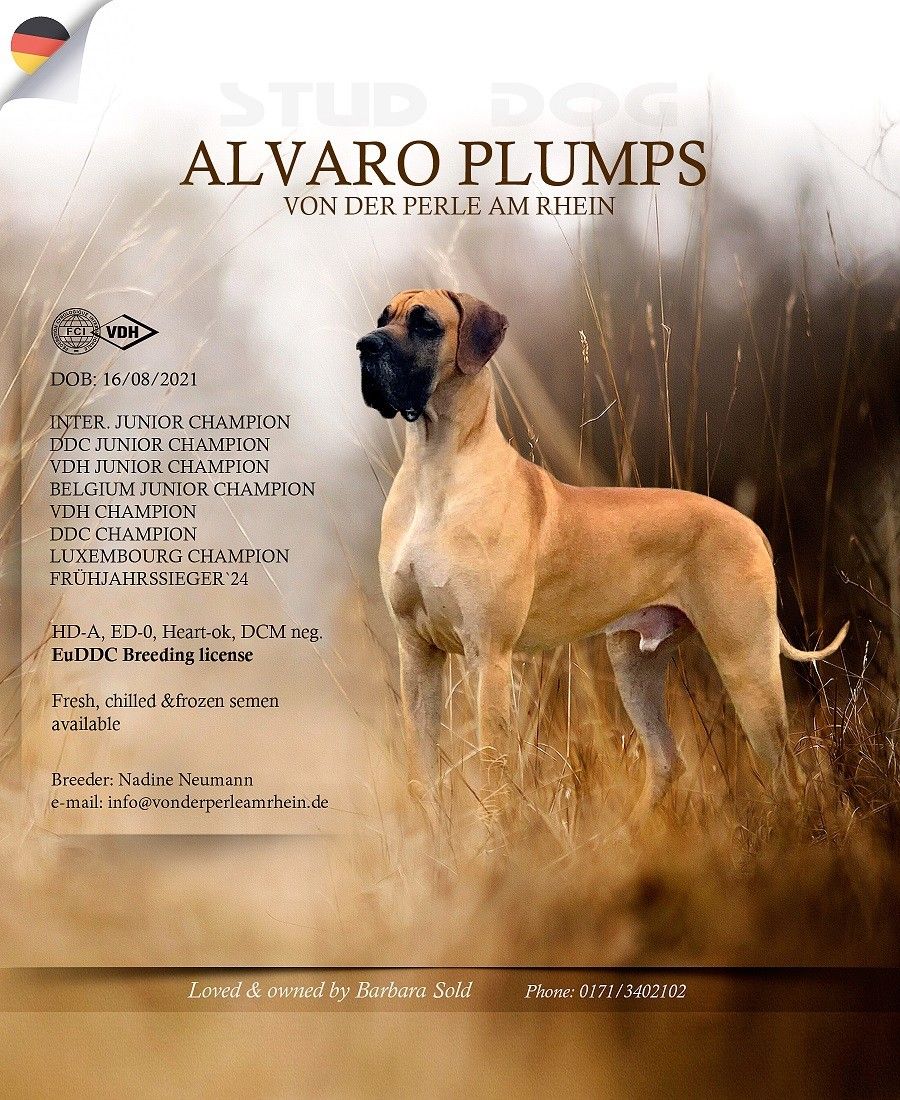 Health testsHD-A/A, ED-0/0, Cardio: OKTitlesJ.Int.CH (FCI)Other achievementsL.CH., Ch VDH, Ch. VDH, Ch DDC, BE-JCh., FCI Int. JCh, DDC JCh, DJCh VDHAncestors loss (AVK)100 %COI (Wright)0%PedigreeSOME RESULTS OF ATTENDED SHOWSIn this section appears information about show achievements of the dog, based on the show results from SHOWS section.