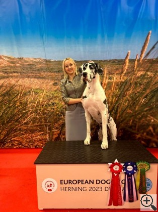 CAC, RCACIB | | Jason Hoke | | 19.05.2023 | Agria Winner Show-2023, Herning, Denmark (Black/Harlequin) | Denmark | Junior | 3 | 19 / 33 | | International | 001, ex. Best Female - 4 JCAC, JCACIB, CQ | | Svein Erik Bjørnes | | 18.05.2023 | European Dog Show-2023, Denmark, Herning (black/harlequin/fawn/brindle) | Denmark | Junior | 17 | 61 / 103 | | International | 001, ex. Best Junior JCAC, JCACIB, CQ | | Søren Wesseltoft | Last update was 21.10.2025