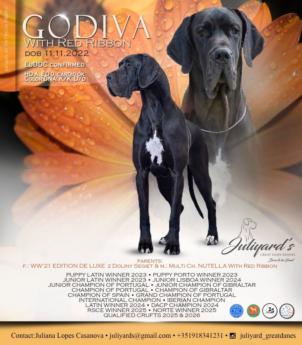 Puppy Latin Winner 2023, Puppy Porto Winner 2023, Junior Latin Winner 2023, Junior Lisbon Winner 2024, Latin Winner 2024, DACP CHAMPION, RSCE Winner 2025, IBERIAN CHAMPION, Qualified CRUFTS 2025 and 2026, EUDDC Confirmed