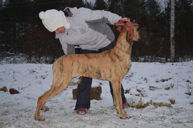 Int.CH (FCI), Russian Club Winner, Grand CH Belarus, Grand CH Russia, Eurasia Champion 2014x2, ... ♀ EVOLET NUO GRAZUCIU Brindle |