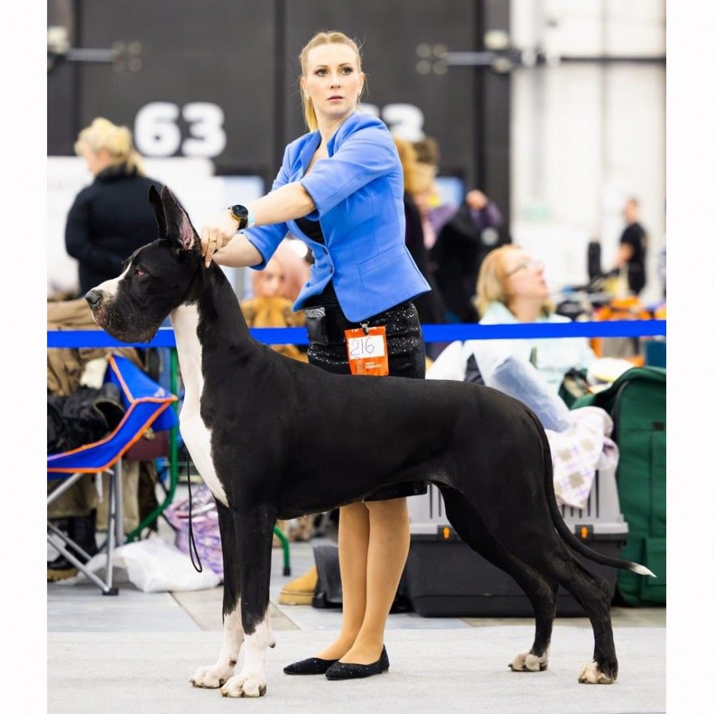 , CH Russia, Moscow Champion , ... ♀ FAVORIT ELEN DOG YADVIGA Harlequin |