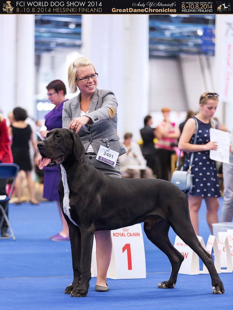 | Date of show | Show name | City / Country | Class | Number of dogs in class | Number of dogs on the show (same sex/all) | | Status | Result | | Judge | | 08.08.2014 | World Dog Show-2014 black, harlequin | Finland | Open | 9 | 36 / 83 | | International | 001, ex. Best Male - 3 CAC | | Albert Wight | Last update was 19.01.2024