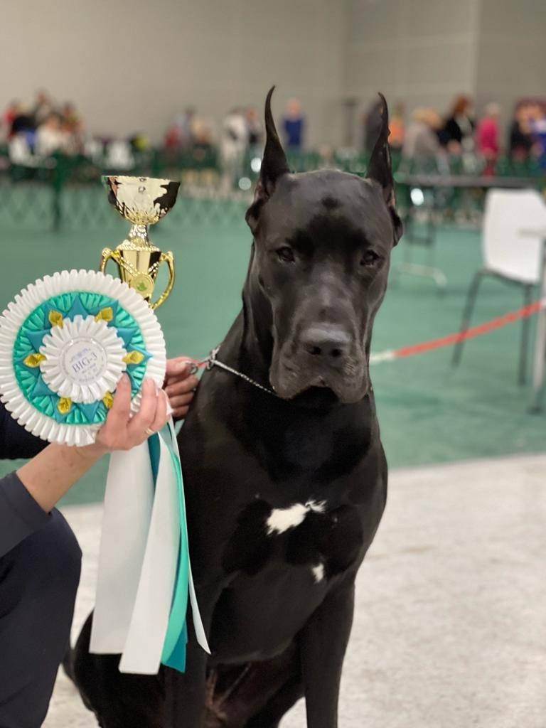 Описания экспертовО. Г. Солдатова : Породный, крупный, крепкий. Отличная голова с хорошим переходом. Крепкая шея, выраженная холка. Прямая спина. Правильное строение конечностей. Хороший темп. МОСКВА. КУБОК МЭРА 2023, 09.12.2023 НЕКОТОРЫЕ РЕЗУЛЬТАТЫ УЧАСТИЯ В ВЫСТАВКАХВ данном блоке отображается информация о выставочных успехах собаки на основании результатов выставок, которые внесены в электронный каталог в разделе ВЫСТАВКИ.