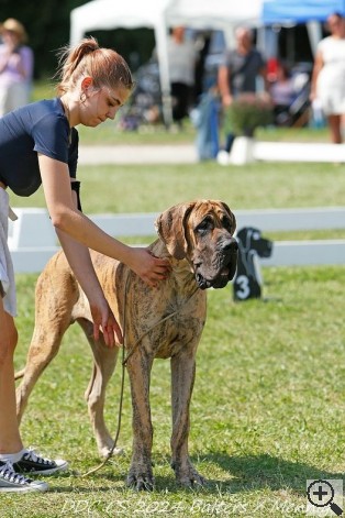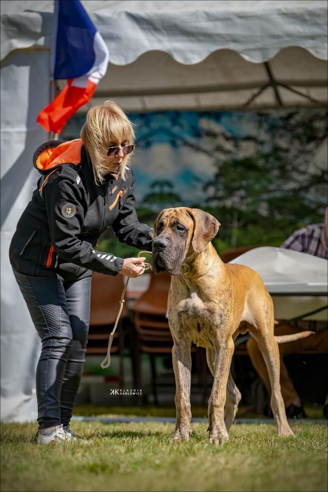 | Date of show | Show name | City / Country | Class | Number of dogs in class | Number of dogs on the show (same sex/all) | | Status | Result | | Judge | | 21.09.2025 | Neuvic - 2025, France, Neuvic, Corrèze (all brindle, females junior: black, harlequin, merle) | France | Open | 7 | 14 / 48 | | National (Club champion) | б/м, v.g.