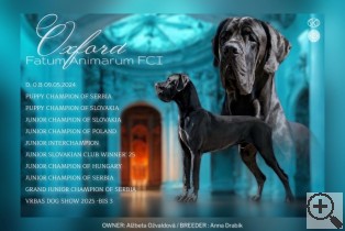 J.Int.CH (FCI) , Grand CH Poland Open , CH Poland, CH Slovakia Open , Liettuan Junior Winner, ... ♀ FANFARA BONI MORES Black |