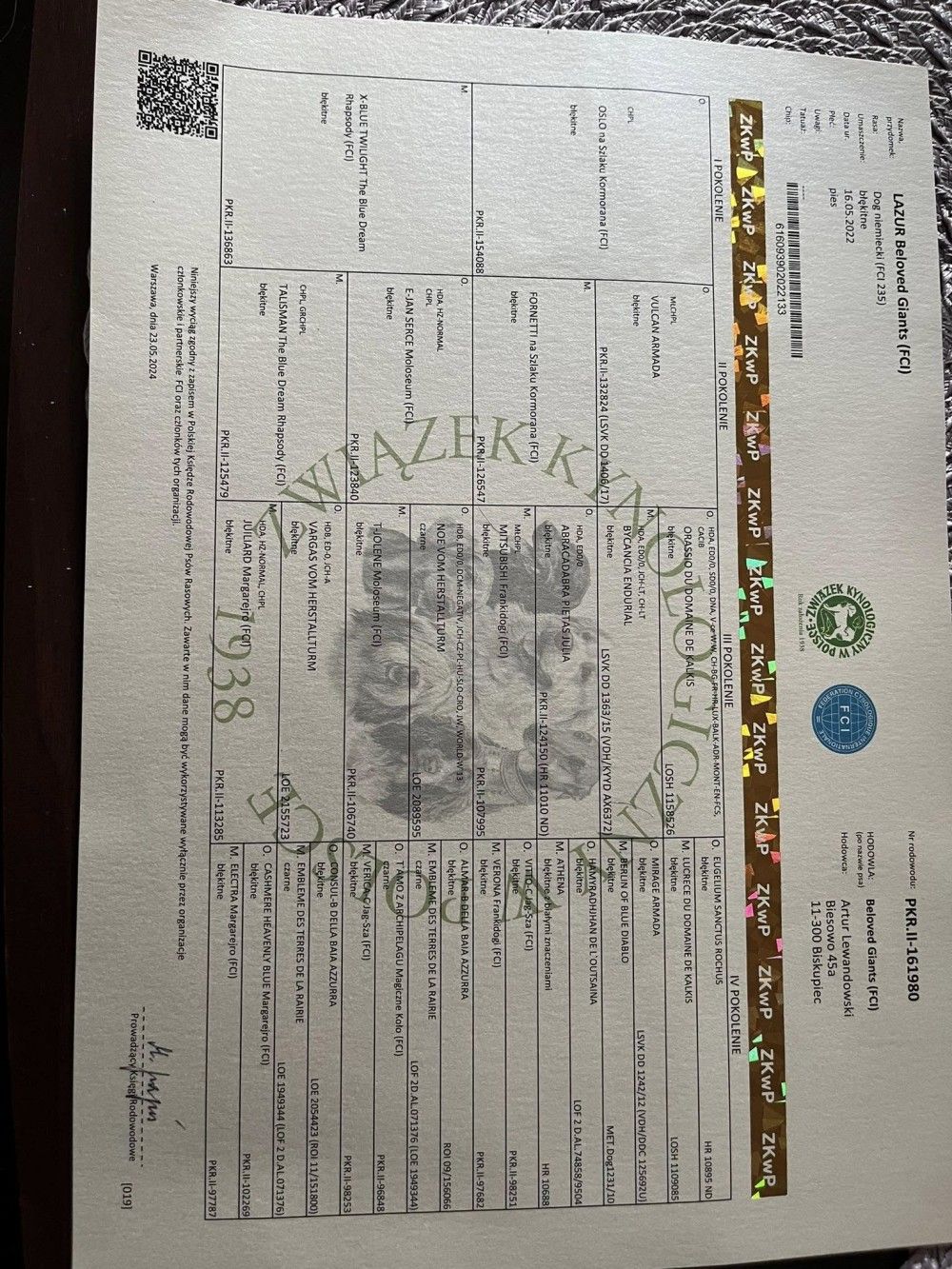 Grand CH Poland, CH Poland ♂ E-JAN SERCE MOLOSEUM Голубой |