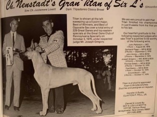 ![]() | LAZYCROFT ON STAGE, AKC WC657371 JUSTAMERE LOVETT x MURLO'S CANDICE OF LISA DANE | (†) 01.12.1972 Кобель |