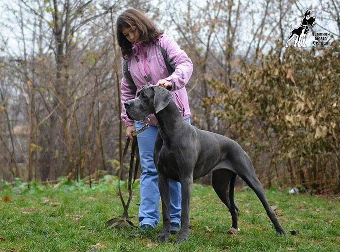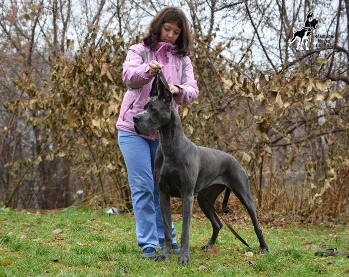 Int.CH (FCI), Russian Club Winner, Grand CH Belarus, Grand CH Russia, Jr Russian Club Winner, ... ♀ ГИГАНТИК ДОГ ЕЛИАНА ДЖОЗЕЛЛА Голубой |