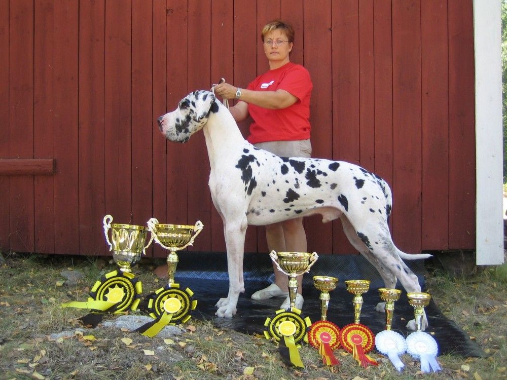 Проверки здоровьяHD-A/A, ED-0/0, Cardio: OKТитулыИнтерчемпион (FCI), Чемпион Боснии и Герцеговины, Чемпион Дании, Чемпион Латвии, Чемпион Литвы, Чемпион Монтенегро, Чемпион Норвегии, Чемпион России, Чемпион Словении, Чемпион стран Балтии, Чемпион Финляндии, Чемпион Черногории, Чемпион Швеции, Чемпион Эстонии, Победитель Балтии 2007, Победитель Литвы 2005, Финский Победитель 2004 & 2006, Юный Финский ПобедительДругие достиженияInt, FI, S,EE, LT, LV, Balt,SLO, RUS, N, Mne, BiH, Nord CH, FI JW-03, FI W -04&-06, EE W-05, LT W-05, Vilna Cup W-05, Balt W-07, SKVPM club sieger-06. Frozen semen available.Потеря предков (AVK)96.67 %COI (коэффициент инбридинга)0.78125%Родословная