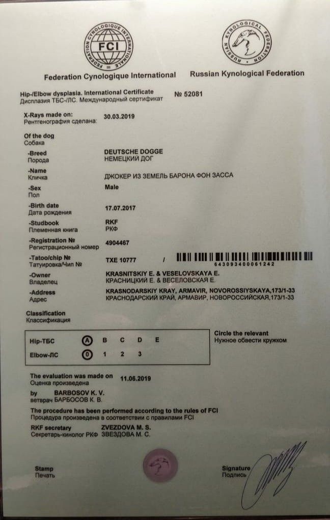 Краковская Л. В.: Породный, крупный, гармоничный, отличный костяк и углы, отличный фронт, узкий постав задних конечностей, пород длин креп гол, красивая шея, правильный верх, чуть скошен круп.