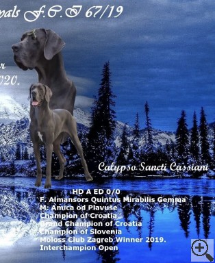 Int.CH (FCI), Grand CH Romania, Grand CH Slovakia, CH Croatia, CH Hungary, ... ♂ ALMANSORS QUINTUS MIRABILIS GEMMA Голубой |