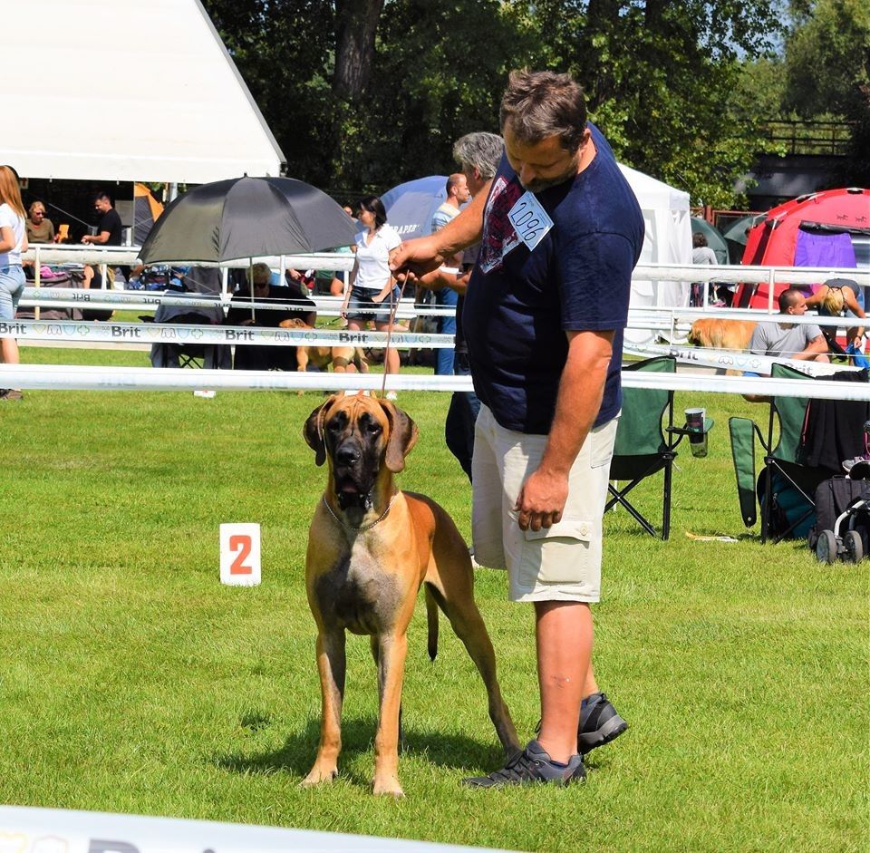 | Date of show | Show name | City / Country | Class | Number of dogs in class | Number of dogs on the show (same sex/all) | | Status | Result | | Judge | | 12.11.2017 | World Dog Show-2017 fawn+brindle females | Germany | Junior | 22 | 62 / 62 | | International | неяв.,
