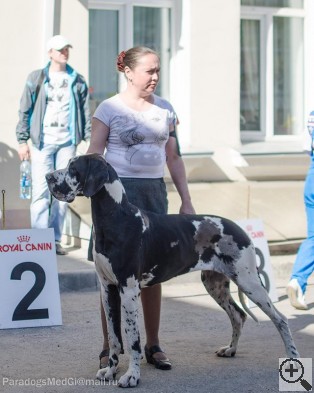 Int.CH (FCI), Russian Club Winner, Grand CH Russia, Jr Russian Club Winner, Balkan CH 2006, ... ♀ ALANO'S SHTAT EAST TO WEST Harlequin |