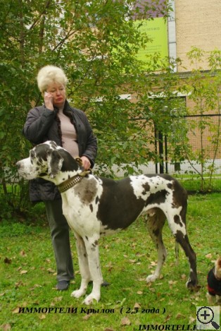 Int.CH (FCI), Russian Club Winner, Grand CH Russia, Jr Russian Club Winner, Balkan CH 2006, ... ♀ ALANO'S SHTAT EAST TO WEST Harlequin |