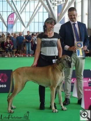Int.CH (FCI), CH Estonia, CH Finland, CH Norway, CH Sweden, ... ♀ LOVE-DANE'S WILD MIDNIGHT Fawn |