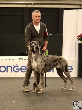| Дата проведения | Название | Город / Страна | Класс | Число собак в классе | Число собак на выставке (того же пола/всего) | | Статус | Результат | | Эксперт | | 18.05.2025 | EuDDC - 2025, Italy, Mantova (черные/серомраморные)