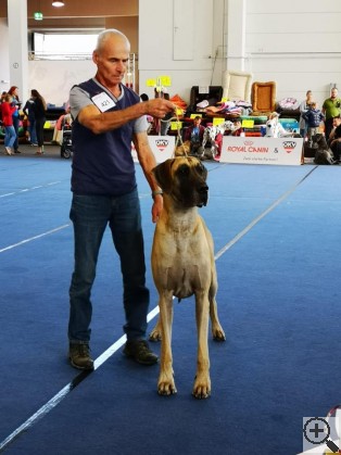 | Date of show | Show name | City / Country | Class | Number of dogs in class | Number of dogs on the show (same sex/all) | | Status | Result | | Judge | | 16.06.2019 | European Dog Show-2019, fawn&brindle | Austria | Open | 7 | 27 / 56 | | International | дискв.,